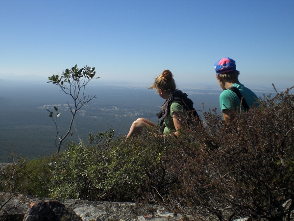 ...zu entdecken. Nach einer kostenlosen warmen Dusche im Örtchen Dunkeld, südlich der Grampians und eingehender Beratung durch ein nettes ehrenamtlich in der Touri-Info arbeitendes älteres Paar ("kostenloser Schlafplatz? Och, viele übernachten einfach da auf der gegenüberliebgenden Straßenseite am Park, da sind auch Toiletten." "Fahrt ihr nach Western Australia? - Ja - Meine Schwester hat da eine Farm. Ich geb euch die Nummer, die suchen immer Leute.") ging's auf zu unserer ersten Bergbesteigung. Das Zielobjekt: Mount Abrupt - 6,5km bergauf! Belont wurden wir mit einer gigantischen Aussicht über die südlichen Grampians und das Umland. Voller Enthusiasmus entschieden wir danach noch einen Berg zu erklimmen, diesmal in der Mitte der Grampians: Mount William, mit 1150m der höchste Berg der Grampians, allerdings befahrbar bis 2km vor dem Gipfel. Die Aussicht? Wieder Wunderbar. In den nächsten Tagen genossen wir diese Aussicht dann noch von zwei weiteren Gipfeln, bewunderten Malerien der Ureinwohner und verbrachten die Abende mit einem schönen Feuer. Dann gings weiter...