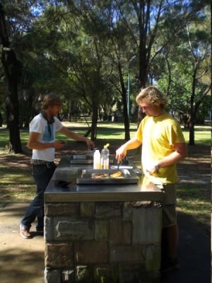 Dieses Prozedure kann man sich folgendermaßen vorstellen: Um 7.00 aufstehen, schnell Frühstück, raus auf's Feld, startbereit warten bis der Mähdrescher die erste Runde vom Feld gedroschen hat und fix die Feuchtigkeit messen. Zu hoch? Zurück! Dann wird bis zum Smoko (unsere 2. Mahlzeit am Tag, zwischen 10.00 und 11.00) was anderes gemacht - z.B. tatkräftig rumstehen - und dann geht's von vorne los. Nach einigen Tagen fragt man sich dann schon warum man nicht einfach länger im Bett liegen bleiben und erst zum Smoko aufstehen kann.