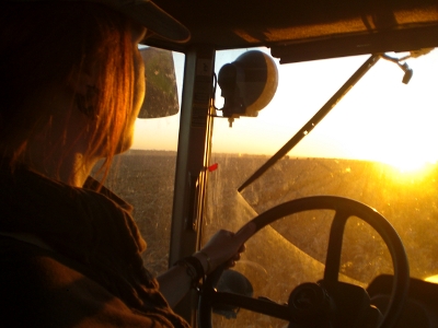 Man gewöhnt sich schließlich an alles. So ergab es sich eines Tages, dass ein derzeit arbeitsloser Truckfahrer zu meinem stetigen Beifahrer wurde. Dieser Umstand und vorallem der Umstand das der Beifahrersitz nicht über die 360° Federung verfügt, bescherte dem monotonen Ernteritual einen neuen Beigeschmack. Stellt euch vor: Ein abgestumpfter oder sagen wir rutinierter Treckerfahrer in seinem Federsessel brettert ohne Rücksicht auf Verluste quer über den Acker im 16. Gang mit automatischer Steuerung und neben ihm der Beifahrer, der sich mit beiden Händen verzweifelt irgendwo festklammert und inzwischen im Stehen fährt um die Huckel und Löcher zu bewältigen. Ich sag euch ein Blick zur Seite... ich habe Tränen gelacht! Und dann kommt der Huckel den beide nicht erwartet haben und Fahrer und Beifahrer fliegen lachend durch die Trecker-Kabine. Und im CD-Player? Natürlich die Country-CD!