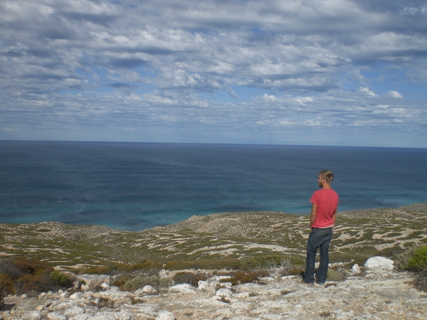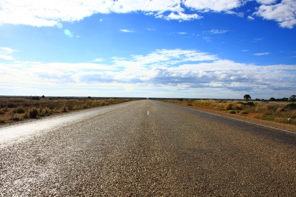 Wir fuhren zunächst bis kurz vor die Grenze (die ersten 300km Nichts) zu Western Australia da hier eine Quarantänestation für Obst und Gemüse ist und wir noch einiges an Gemüse verarbeiten mussten bevor wir "rübermachen" konnten. Glücklicherweise hatten wir gerade das Superangebot an Zwiebeln gekauft - ein Kilo - also Zwiebelsuppe für die nächsten Tage! Nachdem alles verkocht war und wir die ersten berauschenden Blicke über die Klippen der Nullarbor geworfen hatten gings dann am nächsten Tag drauf los: 850 km Nichts liegen vor uns - 146,6km davon nur geradeaus ohne eine einzige kleine Biegung!