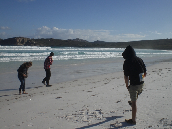 Entlang der Südküste geht es nun weiter gen Westen. Vom Cape le Grand zunächst nach Esperance - protzt zu recht mit etwa 20 km feinster Surf- und Badestrände - und weiter bis zum nächsten Campspot "Quagi Beach". Hier ist es so schön, dass wir erst einmal zwei Tage bleiben. Wir campen quasi über dem Strand, nur die Düne runtergesprungen und dort ist das Meer - türkis, kristallklar und mit den schönsten Muscheln in allen Farben und Formen - und Abends gibts dann ein Feuer!