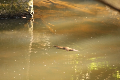 Und tatsächlich...am Abend zeigte sich für ein paar Sekunden ein kleiner Platypus, der quietschfiedel durch das Wasser zappelte. Doch so schnell wie er aus dem nichts aufgetaucht war, war er auch wieder verschwunden. Das konnte doch noch nicht alles von unserer Platypus-Bekanntschaft gewesen sein...Da er sich an diesem Abend nicht mehr zeigte, warteten wir am nächsten Morgen in aller Früh auf ihn...und siehe da....das frühe Aufstehen hatte sich gelohnt, da wir dem Platypus vergnügt beim morgendlichen Frühstück und Frühsport zuschauen durften...Magnificant!