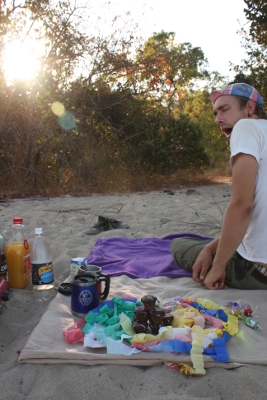 Nun blieben uns noch zwei Tage bis unser Boot in Meer stechen sollte. Diese und vor allem Jaspers Geburtstag wollten wir nicht in Airlie Beach versaufen, ähh verbringen, also entschlossen wir uns etwas nördlich den Hideaway Bay anzusteuern in der Hoffnung dort ein ungestörtes Plätzchen am Strand zu finden zum entspannen, sonnen (Wir können doch nicht mit unseren weißen Socken aufs Boot gehen!) und geburtstagen. Und es gelang! Wir fanden ein wunderbares Plätzchen was uns nach anfänglichem Zögern (Campen war hier verboten - aber wir Campen ja auch gar nicht wir schlafen ja im Auto) für zwei Tage beherbergte. Mit wunderschönem Strand, türkisem Wasser und ein paar Segelbootankerplätzen vor der Küste. Somit verbrachten wir die nächsten 48 Std. fast restlos am Strand. Der Strand war unsere Küche, unser Wohnzimmer unsere Terasse und Jaspers Geburtstagszimmer. Lesen, Muscheln sammeln, schlemmen, nix tun!
