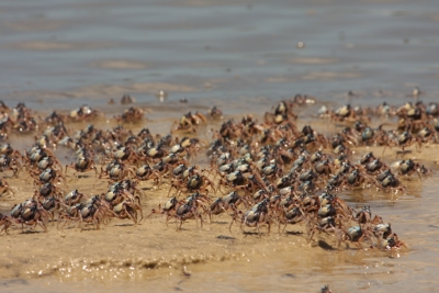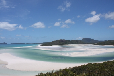 Am nächsten Tag fuhren wir nach einem wunderbaren Frühstück (Egg Benedict wahlweise auf geräuchertem Lachs oder Bacon) Richtung weltberühmtem Whitheaven Beach. Der Whiteheaven Beach ist der weißeste Strand der Welt, da der Sand zu 98% aus reinem Quarz besteht. Umspült wird dieser weiße Sand von türkisem, kristallklaren Wasser und in den Prielen kann man kleine (ungefährliche) Haie, Sting rays, Seesterne und andere Tiere finden. Ganz besonders faszinierend fanden wir das Verhalten von tausenden von kleinen Krebsen mit blauem Panzer die wie wild hin und her gelaufen sind, immer in riesigen Schwärmen und sich im Gefahrenfall einfach fix im Sand einbuddelten. Zunächst erkannte man sie gar nicht aber bei genauerem Hinsehen entdeckte man überall riesige Schwärme aus kleinen blauschwarzen Punkten die sich alle in die selbe Richtung bewegten. Nach der Whiteheavenbeachbesichtigung und einem vorzüglichen Lunch steuerten wir eine Bucht zum Schnorcheln an. Also, alle man rein in den Samsanzug! Und los gehts: findet Nemo!!!