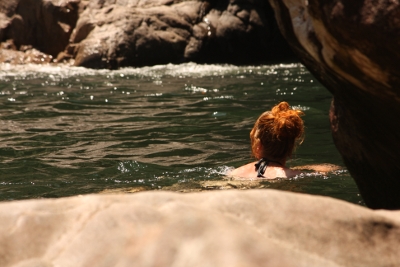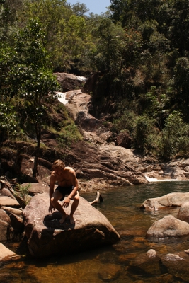Nachdem wir unser Glück so erfolgreich herausgefordert hatten, beschlossen wir zu den so genannten Finch Hatton Gorge zu fahren, um dort in den von Wasserfällen ausgespülten Badelöchern eine Abkühlung zu finden. Ein längerer Aufstieg durch den subtropischen Regenwald und...there you go...Finch Hatton Gorge. Keine bösen giftigen Quallen, keine Boxjellyfische einfach purer Badespaß in mitten von Regenwald. Was gibts besseres nach 4 Monaten durchgängiger Arbeit?