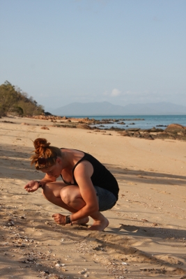 Von Mackay wollten wir nun Richtung Airlie Beach aufbrechen. Unsere erster Stop war ein Geheimtipp einer Mitarbeiterin des Campingstores. An einem Fluss etwas nördlich von Mackay konnten wir ungestört all unsere neuen Dinge ausprobieren :) Also erstmal die Hängematte gespannt und ne Runde abhängen. Abends gab es dann natürlich Essen am Lagerfeuer. Leider, oder Gott sei Dank, mussten wir feststellen, dass unser frisch erworbenes Fernglas nicht richtig funktionierte und somit am nächsten Tag noch einmal nach Mackay umkehren. Allerdings verhalf uns dies auch zu weiteren praktischen Holzkästen für unser Auto. Und wir konnten nun noch zum Cape Hillsborough was am Tag zuvor unserem Flusscamping gewichen war. Am Cape waren wir dann wiedermal ein bisschen wandern, zunächst über Holzbohlenwege durch Mangroven und dann auf den Spuren der .....Aboriginies. Zum Übernachten steuerten wir den Campground des Natonalparks an, der sich wahrlich lohnte. Empfangen wurden wir von Kängurus und einer Kragenechse (diese lustigen Dinger laufen auf zwei Beinen). Außerdem gab es Hängemattenbäume und den Strand direkt vor der Tür!