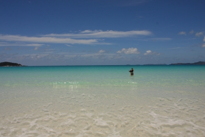An unserem Campground gab es glücklicherweise ein paar Badebegeisterte, so dass wir am nächsten morgen etwas planschen konnten. Man geht dann sehr vorsichtig ins Wasser, kühlt sich kurz ab und hüpft wieder raus. Interessant ist an dieser Stelle, dass wir später gelesen haben das die meisten Stingerunfälle im knöchel- bis hüfttiefen Wasser passieren, naja. Nach ein paar Stunden am Strand und ein bisschen Planschen ging's dann los gen Airlie Beach.