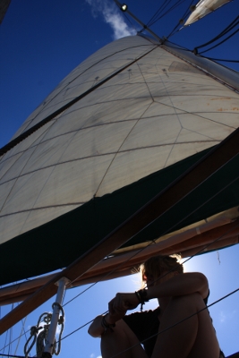 Am nächsten morgen schipperten wir dann mit gesetzten Segeln gemütlich zurück gen Airlie Beach. Schnell noch ein paar Gruppenfotos machen, um die Pauschalreise auch in schöner Erinnerung behalten zu können. Nach drei Stunden Überfahrt erreichten wir gegen 11 Uhr die Marina von Airlie Beach und mussten unser liebgewonnenes Segelboot nach ein paar so wunderschönen Tagen schon wieder verlassen - Aber was solls, wenn ich groß bin werd ich sowieso Pirat!