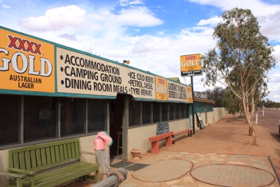So sieht ein in der Karte eingezeichneter Ort im Outback aus! Nein auf der anderen Straßenseite steht kein Haus mehr, dafür gibt es neben diesem Pub noch eine Zapfsäule und im Garten kann man Campen.