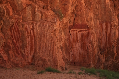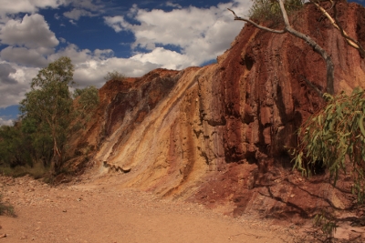Guck mal, da erzählen die Aborigines die Geschichte von den Riesenraupen aus der Traumzeit. Wir sind in den East MacDonnell Ranges auf dem Weg nach Alice Springs.