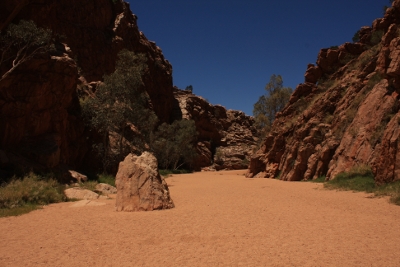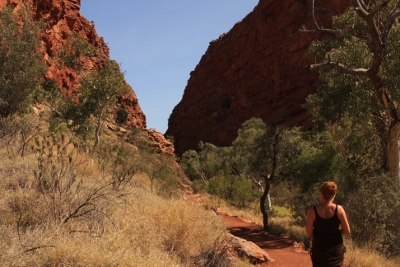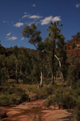 Unser Auto hat Palm Valley geschafft! Der Weg dahin ist zwar nur etwa 20km, dauert aber über eine Stunde und führt durch Flüsse, Sand, Schotter, über Felsen und alles andere außer Asphalt. Ja und das ist Palm Valley! Eine große Schlucht in der riesige uralte Palmenbestände zu finden sind, die in der Gegend früher überall zu finden waren, jedoch nur entlang des Palm Creeks bis heute überlebt haben.