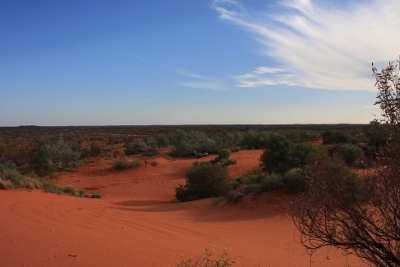 Big Red! Eine riesige rote Sanddüne mit ganz feinem roten Sand in der Nähe von Alice Springs. Und australisch wie wir sind, sind die Reifenspuren natürlich von uns ;)