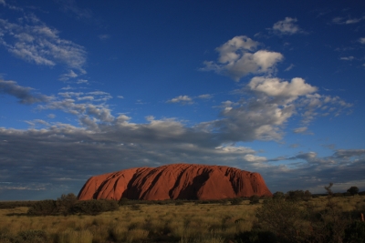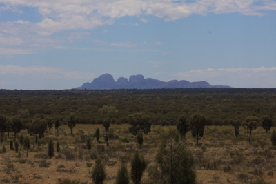 Kata Tjuta - von ganz weit weg. Die vielen Köpfe (Kata Tjuta bedeutet soviel wie viele Köpfe) sind nämlich so groß, dass man von näher dran immer nur ein Teil sehen kann.